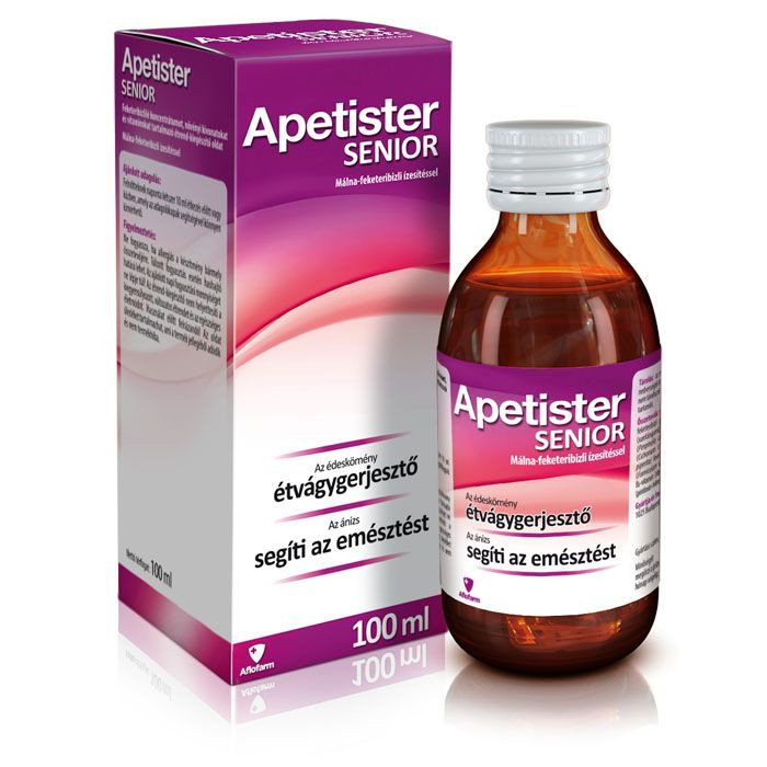 Az Apetister SENIOR összevetői közül az édeskömény kivonata étvágygerjesztő és segíti a gázok távozását, az ánizs kivonata pedig segíti az emésztést. Idősek és felnőttek számára ajánlott málna-feketeribizli ízű étrend-kiegészítő oldat.