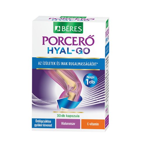 A Béres Porcerő Hyal-Go kapszula komplex étrend-kiegészítő készítmény hialuronsavval, ördögcsáklya gyökér kivonattal, valamint C-vitaminnal.