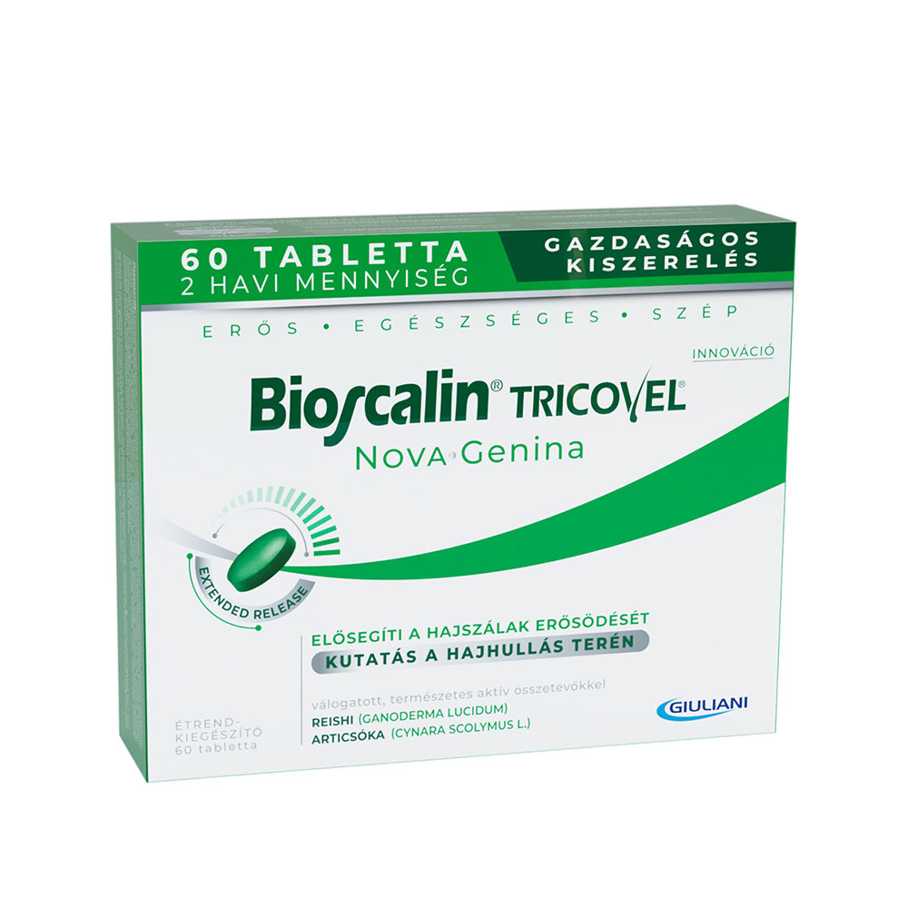 A Bioscalin Tricovel Nova Genina étrend-kiegészítő tabletta elősegíti a hajszálak erősödését.