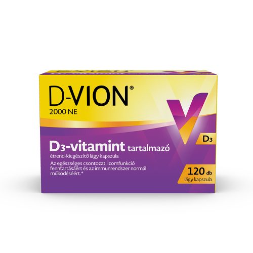 A D-VION 2000 NE D3-vitamint tartalmazó étrend-kiegészítõ lágy kapszula egyik elõnye, hogy a benne lévõ D-vitamin növényi olajban oldott formában van jelen, így könnyen hasznosítható a szervezet által.