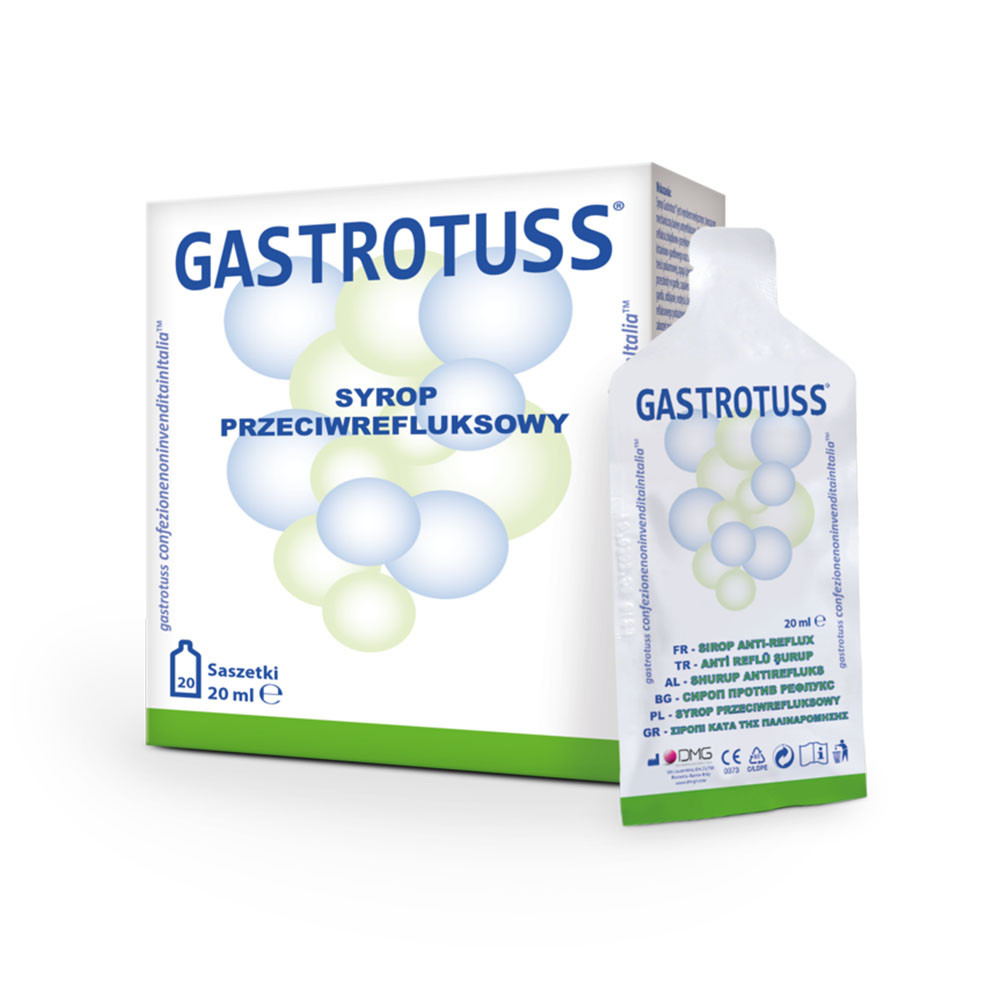 A Gastrotuss® szirup gyomornyelőcső és/vagy gégegarat reflux kezelésére javasolt készítmény, mely csökkenti a betegség okozta tüneteket valamint segíti a gyomor-nyelőcső és/vagy gége-garat nyálkahártya újrahámosodásást.