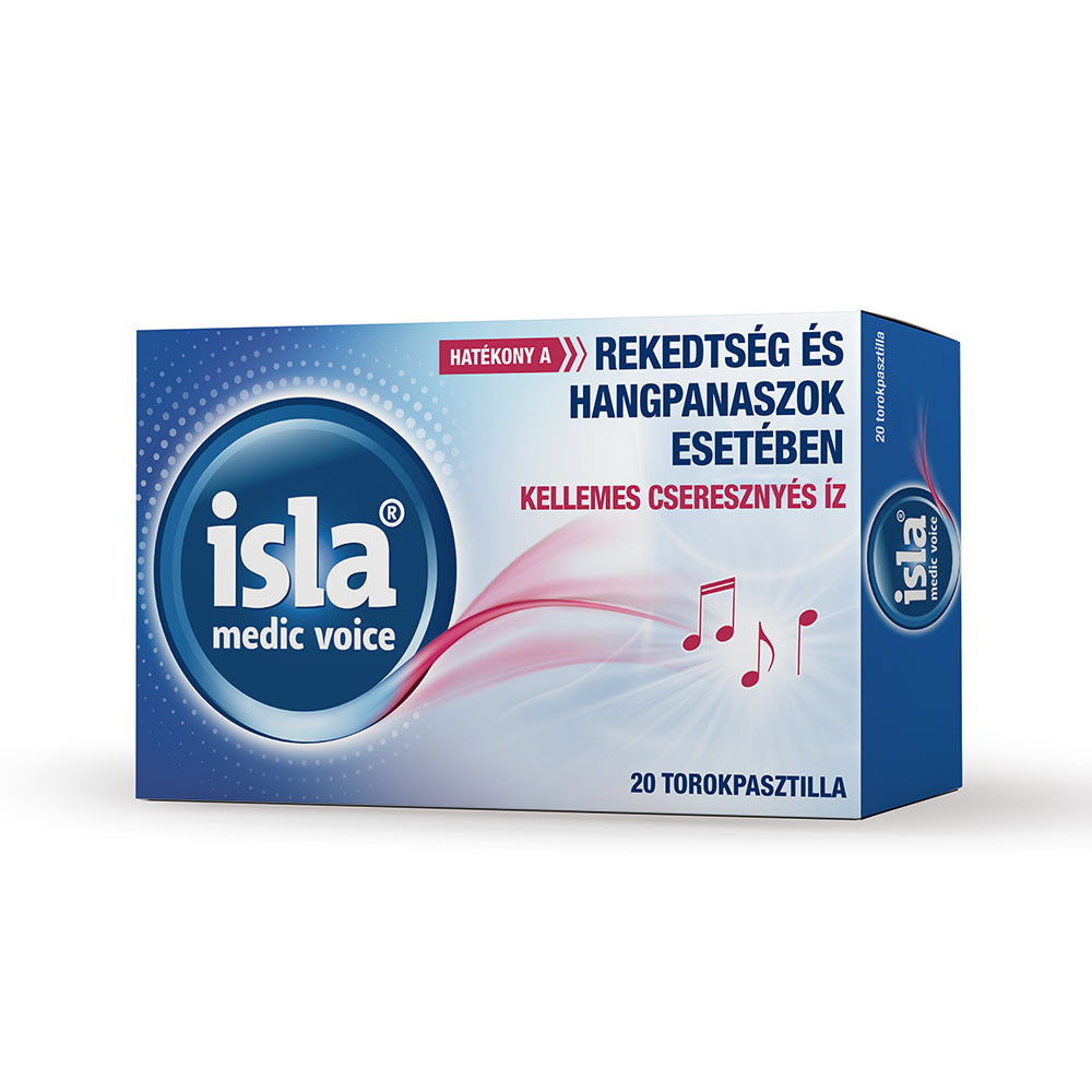 Az Isla Medic voice cseresznyés ízű torokpasztilla enyhíti a meghűléssel, torokfájással járó panaszokat.