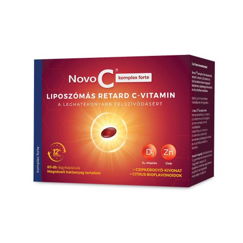 Novo C Komplex Forte liposzómás retard C-vitamin a leghatékonyabb felszívódásért természetes összetevõkkel, cinkkel és D-vitaminnal, 7 éves kortól.
